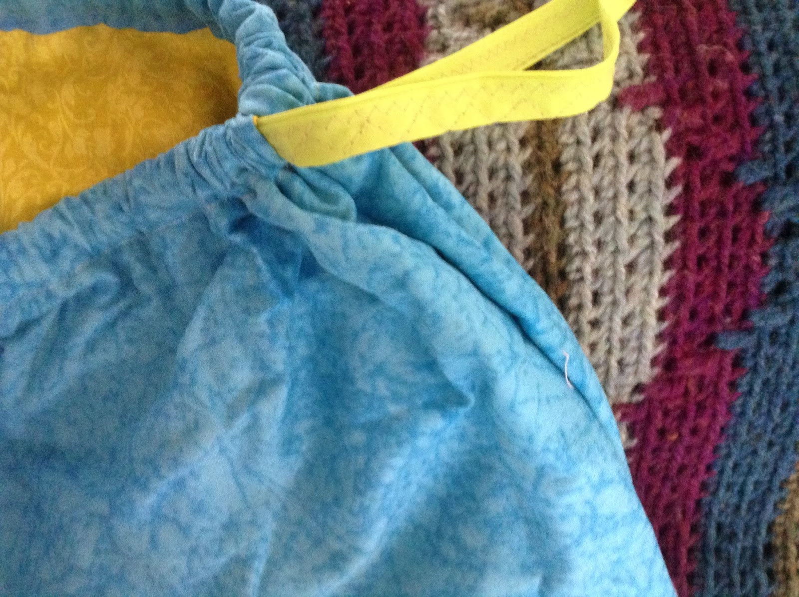 3. Next step was to sew up the sides to the point where the casings were. double-stitching a few times to reinforce that spot but not stitching through the casing.